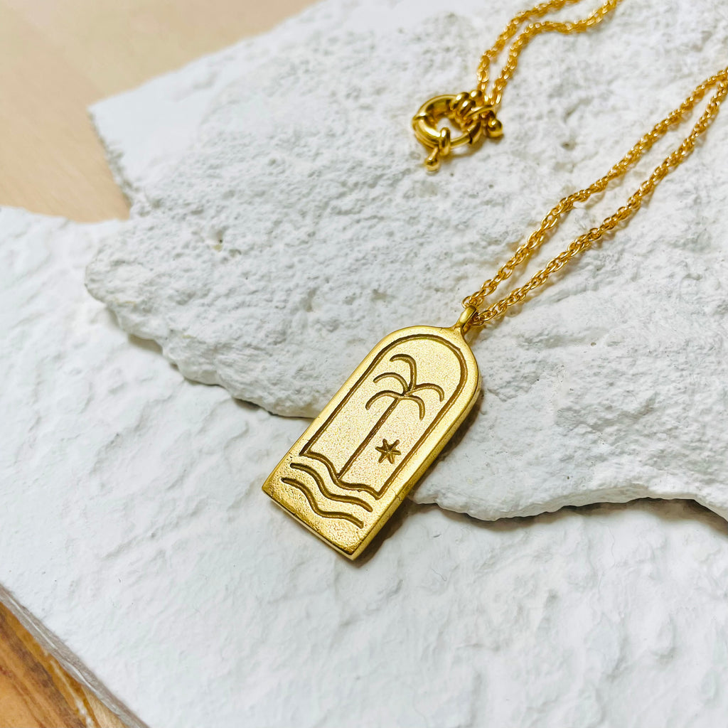 Collier chaîne torsadée et médaillon PALMIER, en laiton doré à l’or fin.